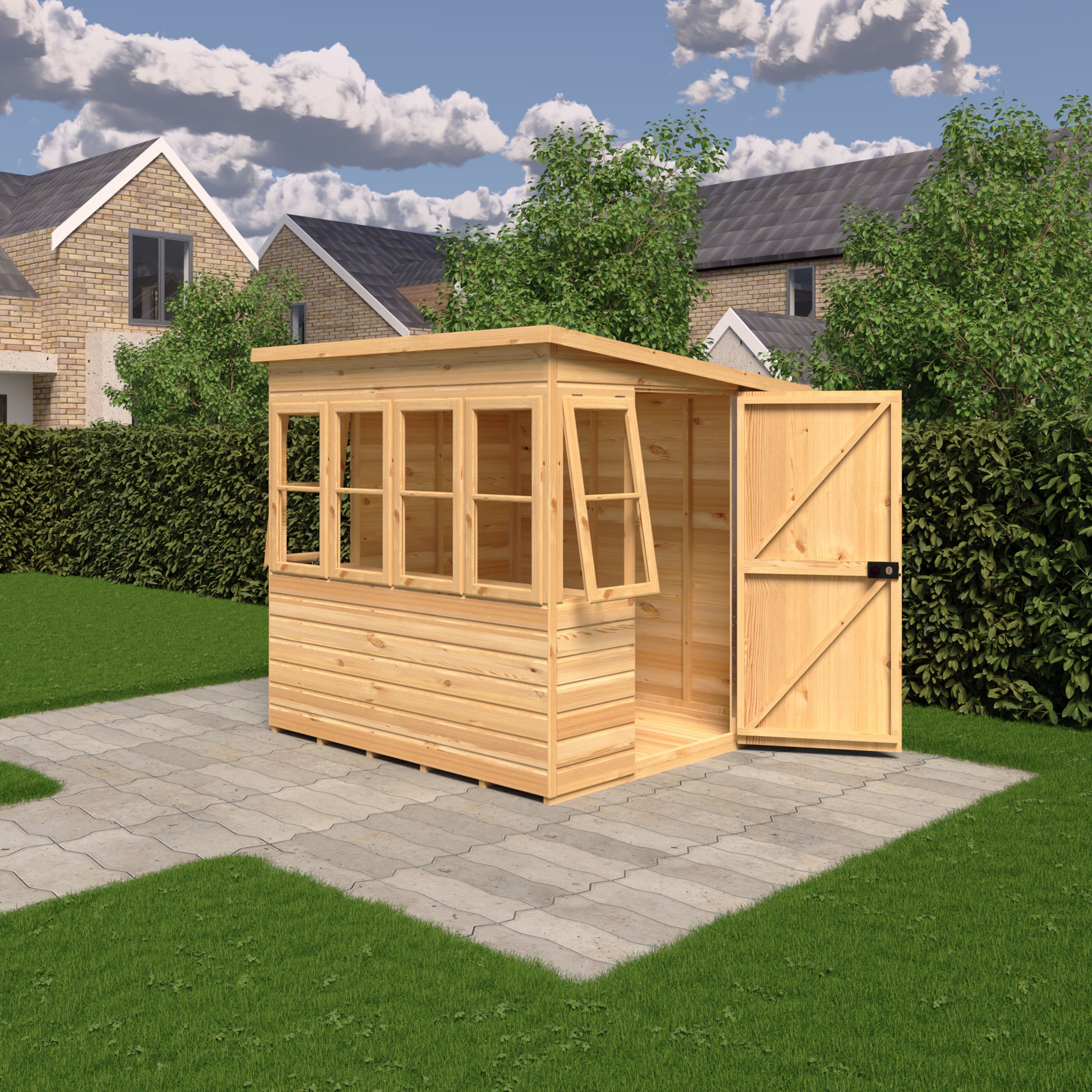 6x6 Sun Pent Potting Shed Style B Single Door 12mm Shiplap