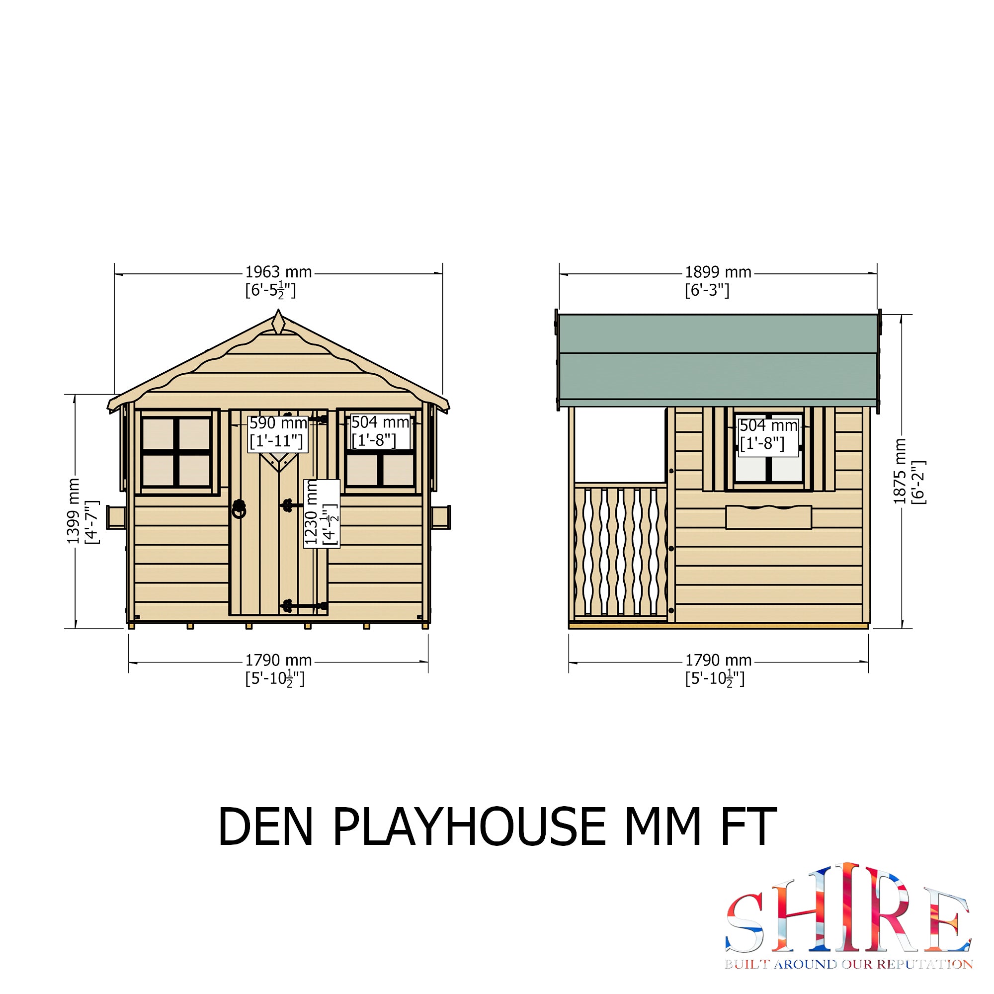 Designed with safety in mind, the Den features a spacious interior, with an impressive ridge height of 1875mm, allowing for ample headroom while they play. The eaves height of 1399mm adds to the spacious feel, making it perfect for both indoor play and storage. The thoughtfully constructed framework, using robust 34mm x 34mm timbers, guarantees stability and longevity.