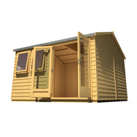 Crafted from robust 20mm superlap walls, this studio is designed for durability and style, ensuring it stands the test of time while enhancing the aesthetics of your garden. The 12mm matching roof material complements the smart design, providing protection against the elements, while the 16mm buffalo floor offers sturdy support and a smooth finish.