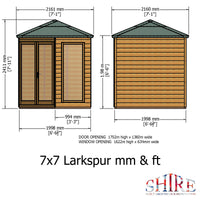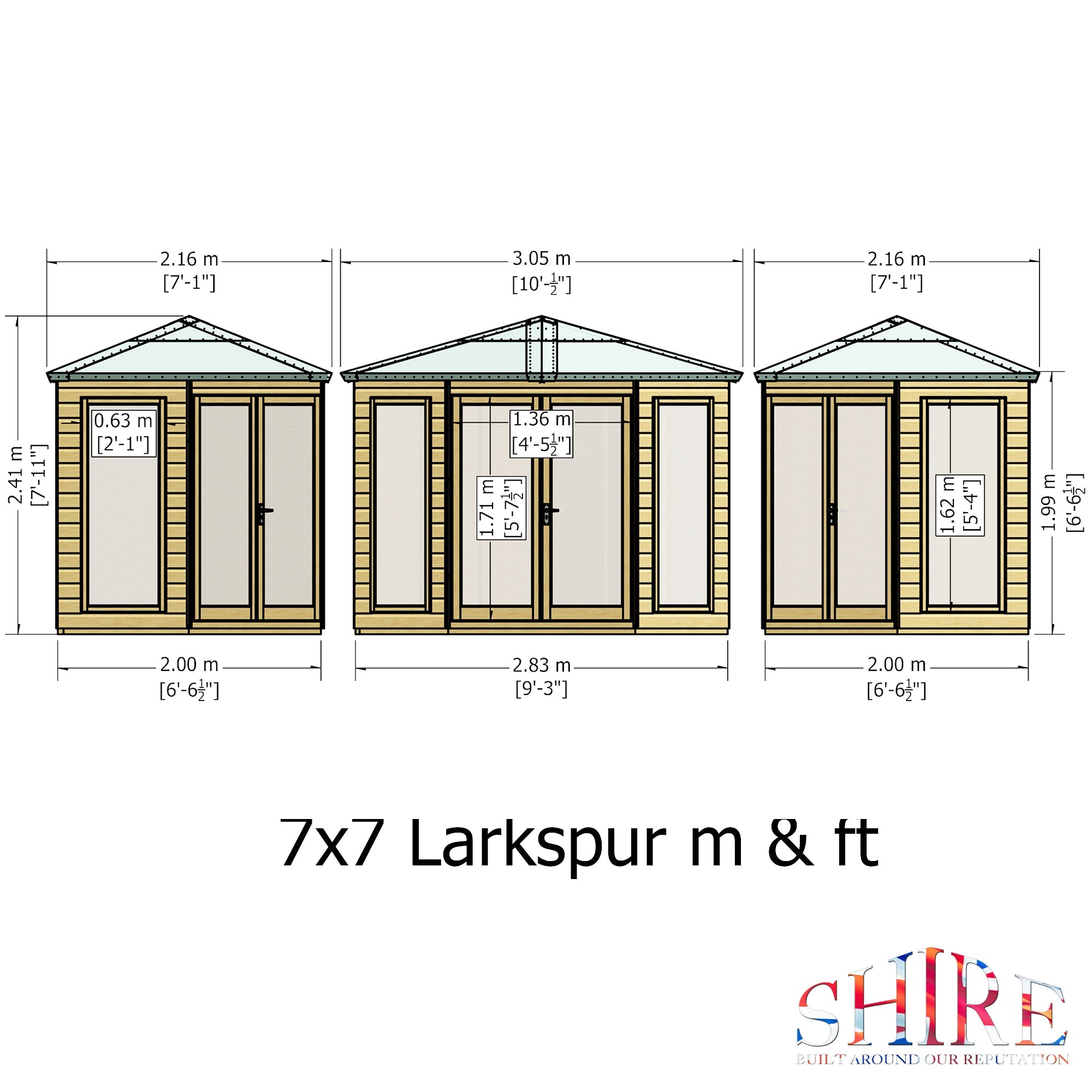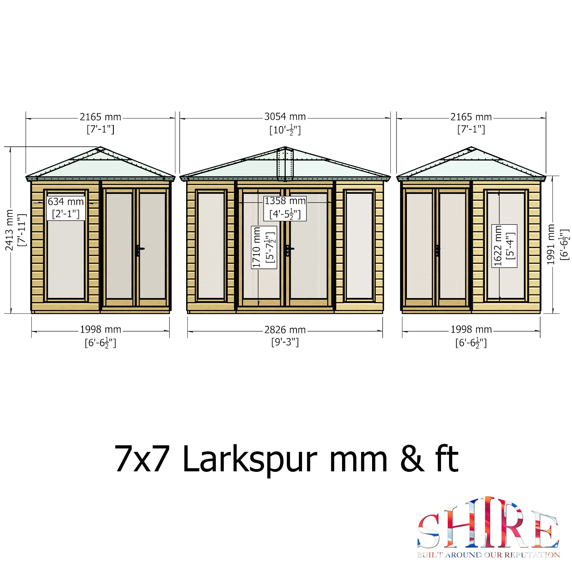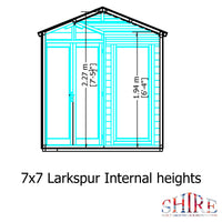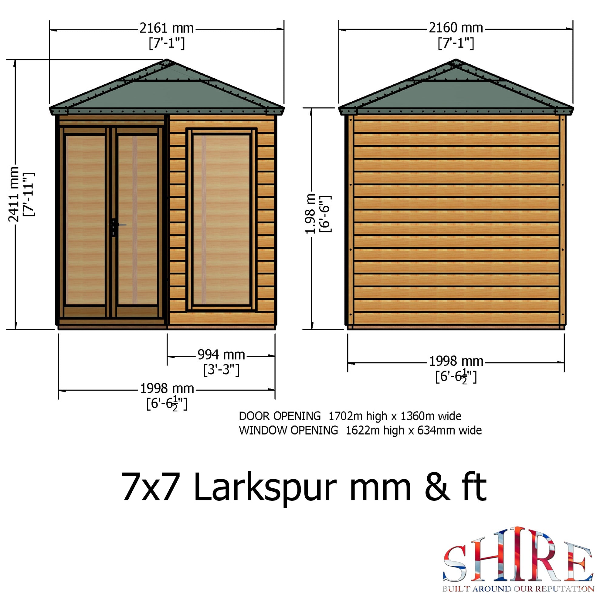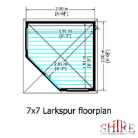 Introducing the Larkspur 7x7, a stunning addition to your garden that combines elegance with functionality. Crafted from premium 12mm Shiplap timber, this garden structure is designed to provide a versatile space for relaxation, hobbies, or storage. With internal dimensions of 1910 x 1910mm and an external footprint of 1998 x 1998mm, the Larkspur offers ample room to create your personal sanctuary.