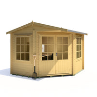Transform your garden with the Shire 10x10 Rochester Corner Log Cabin – where style meets practicality!