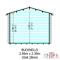 Introducing the Shire 10x8 Bucknells Log Cabin, a perfect blend of style and functionality. With robust 28mm log cladding, this log cabin is designed to provide a warm and inviting atmosphere while ensuring durability and strength. Measuring 2990mm in width and 2390mm in depth, it offers ample space for a variety of uses, whether it’s a home office, garden retreat, or a creative workshop.