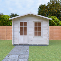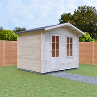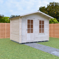 With an internal ridge height of 2408mm and an external ridge height of 2581mm, this cabin offers a spacious feel while also being compact enough for smaller gardens. On the exterior, the natural wood finish allows it to blend beautifully with any landscape. Enhance your outdoor living experience with the Shire 10x8 Bucknells Log Cabin, where comfort meets craftsmanship.