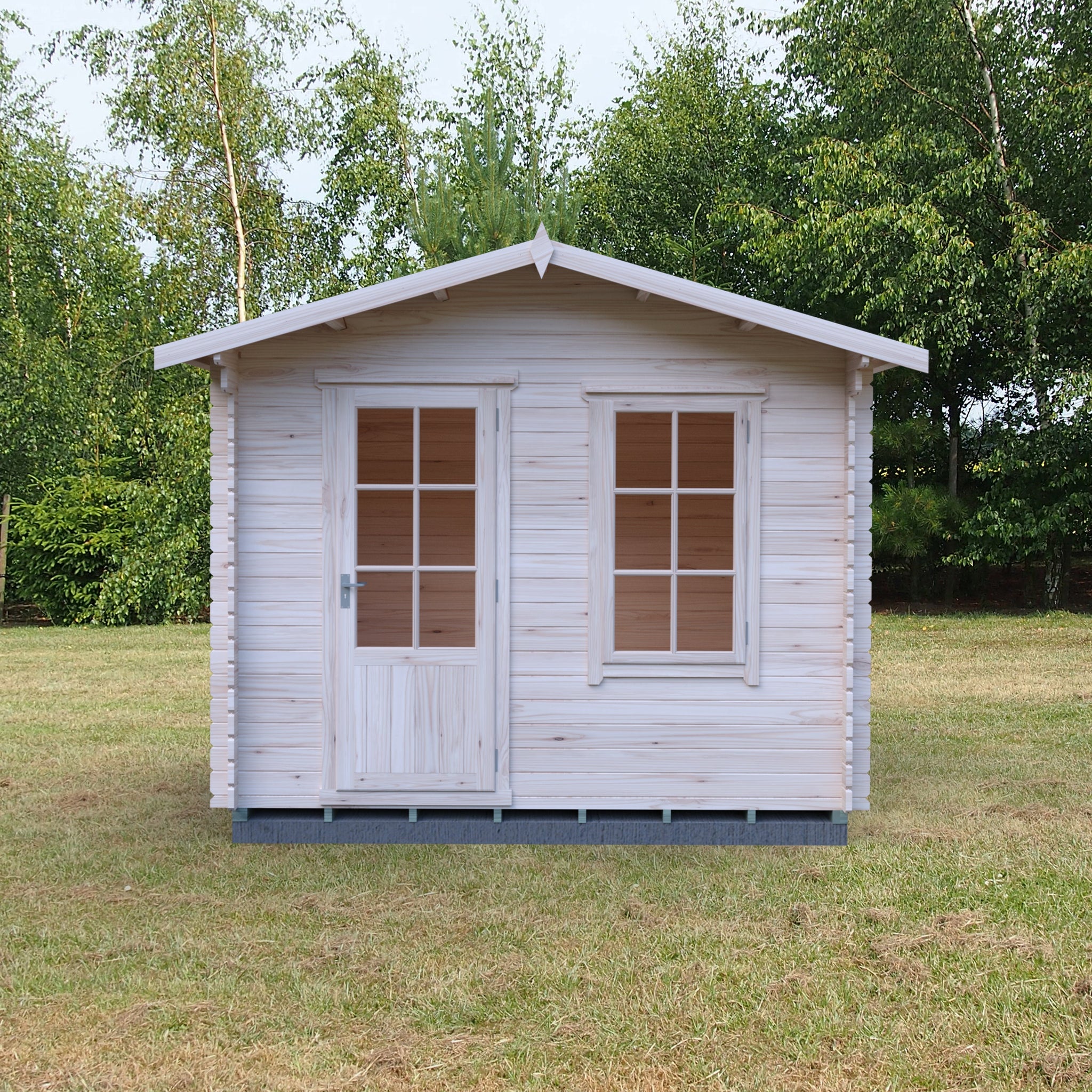 The cabin features a stunning 15mm tongue and groove (T&G) roof and floor, delivering a high-quality finish that's not only aesthetically pleasing but also practical. The single door provides easy access, and a large window filled with glass allows natural light to infuse the space, creating an airy and bright environment.