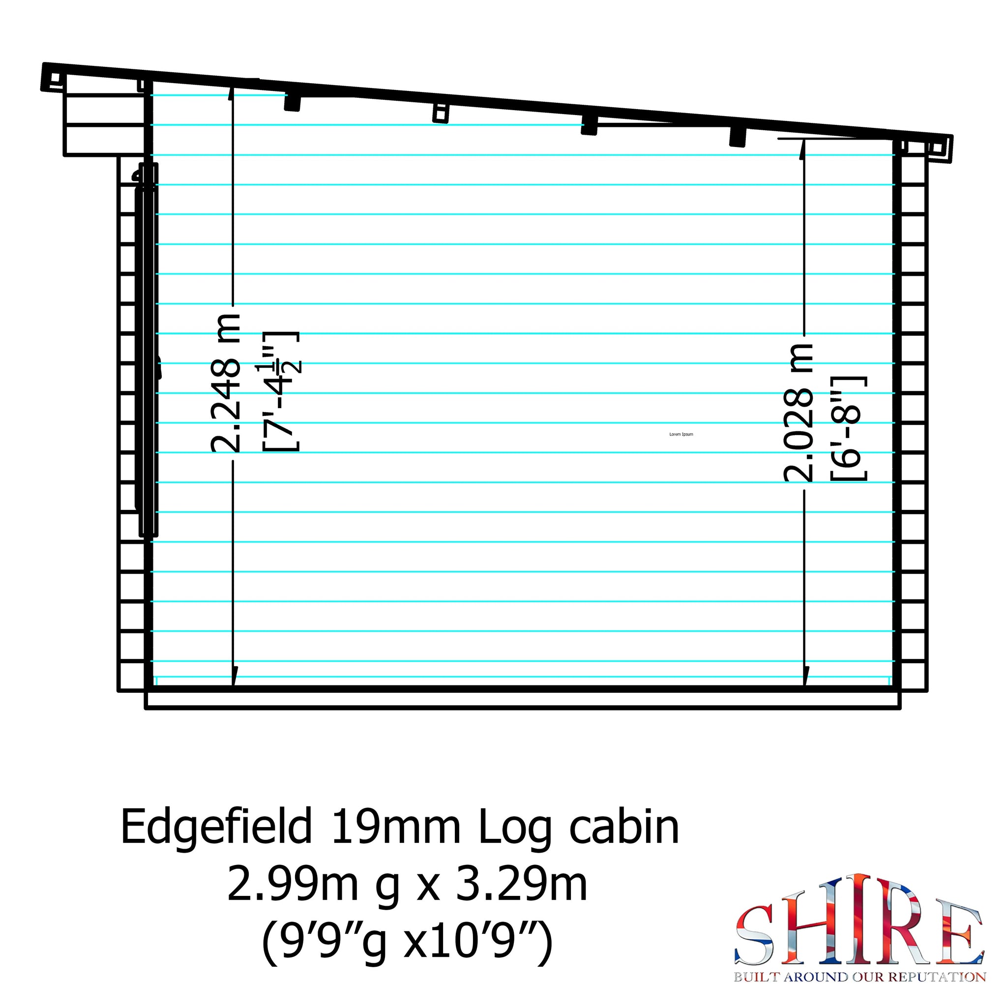 Discover the perfect blend of style and functionality with the Edgefield, now available at Shire. This impressive log cabin serves as an ideal choice for those seeking additional living space, whether as a tranquil home office, a sophisticated studio, or an outdoor retreat. Meticulously crafted with 19mm interlocking logs, the Edgefield Log Cabin assures durability and thermal efficiency, providing a robust and visually appealing structure.