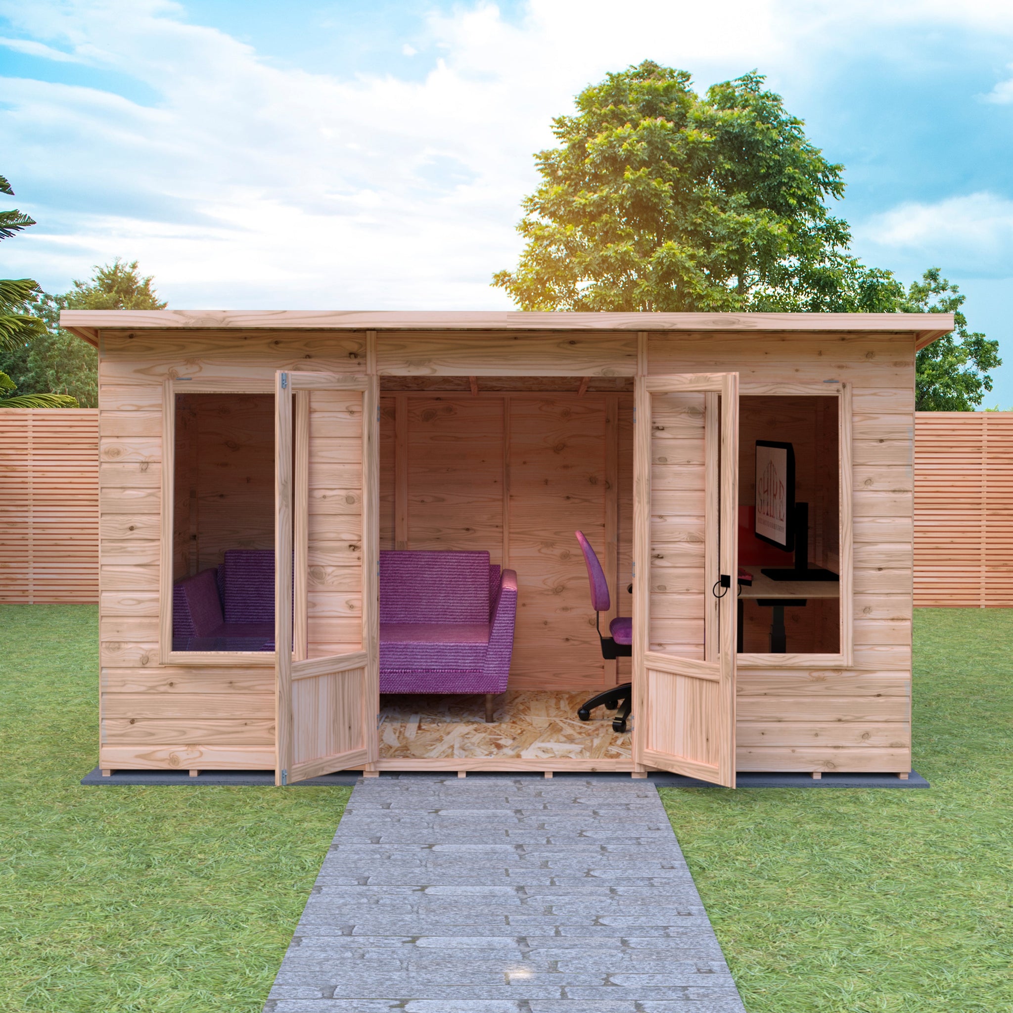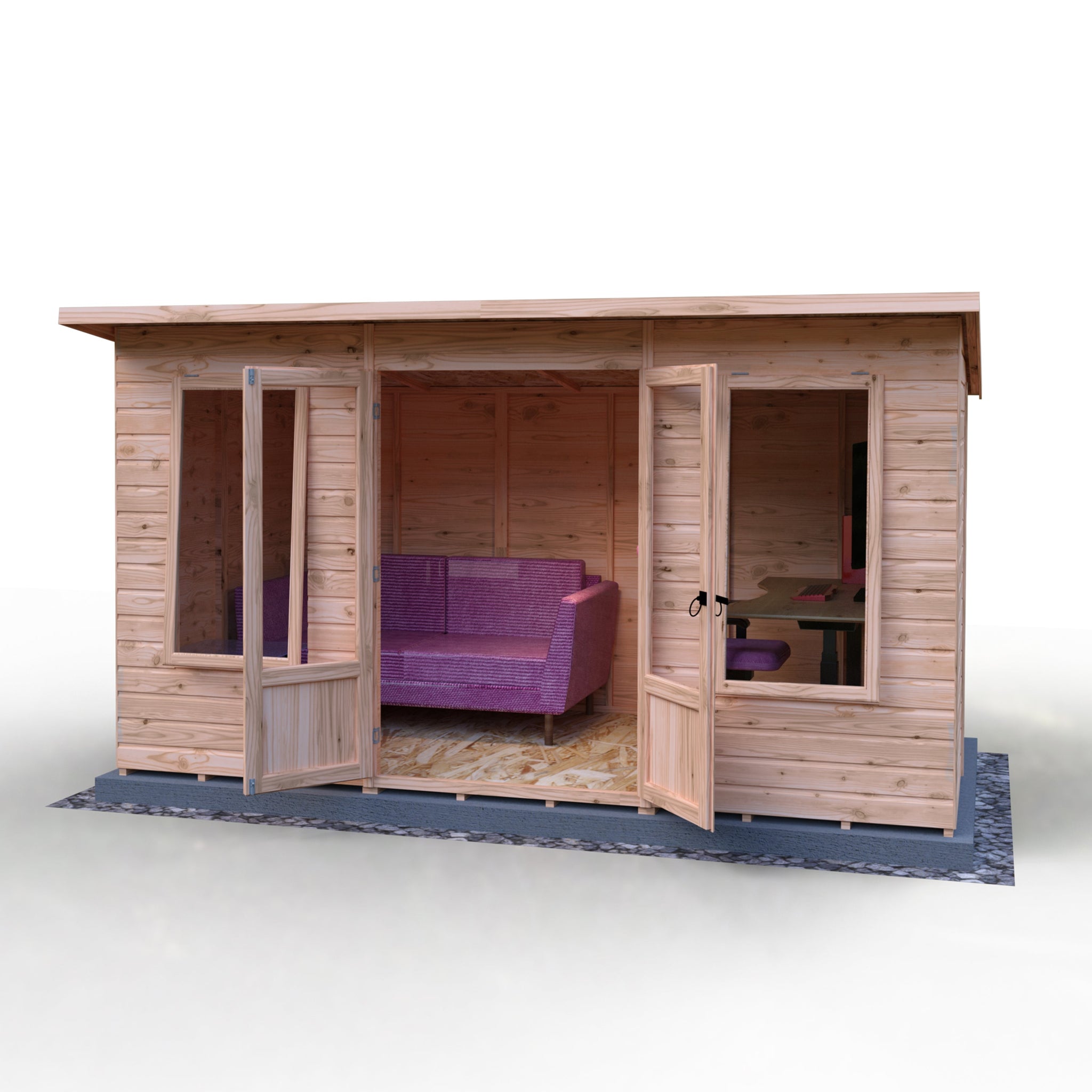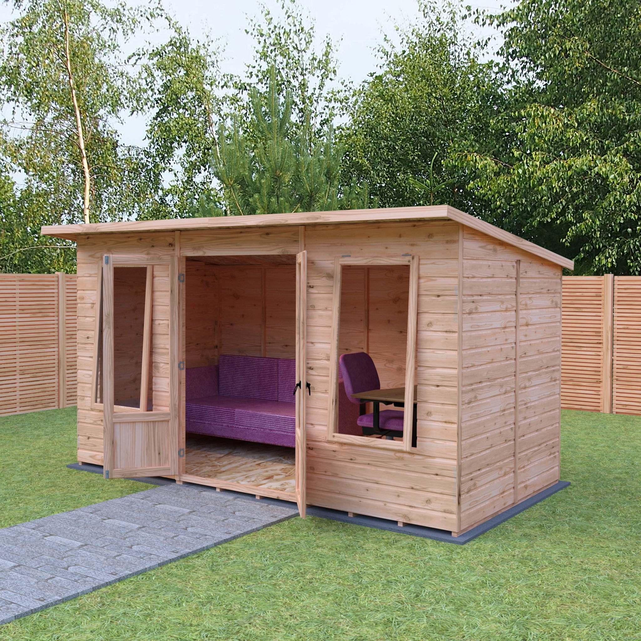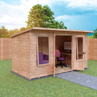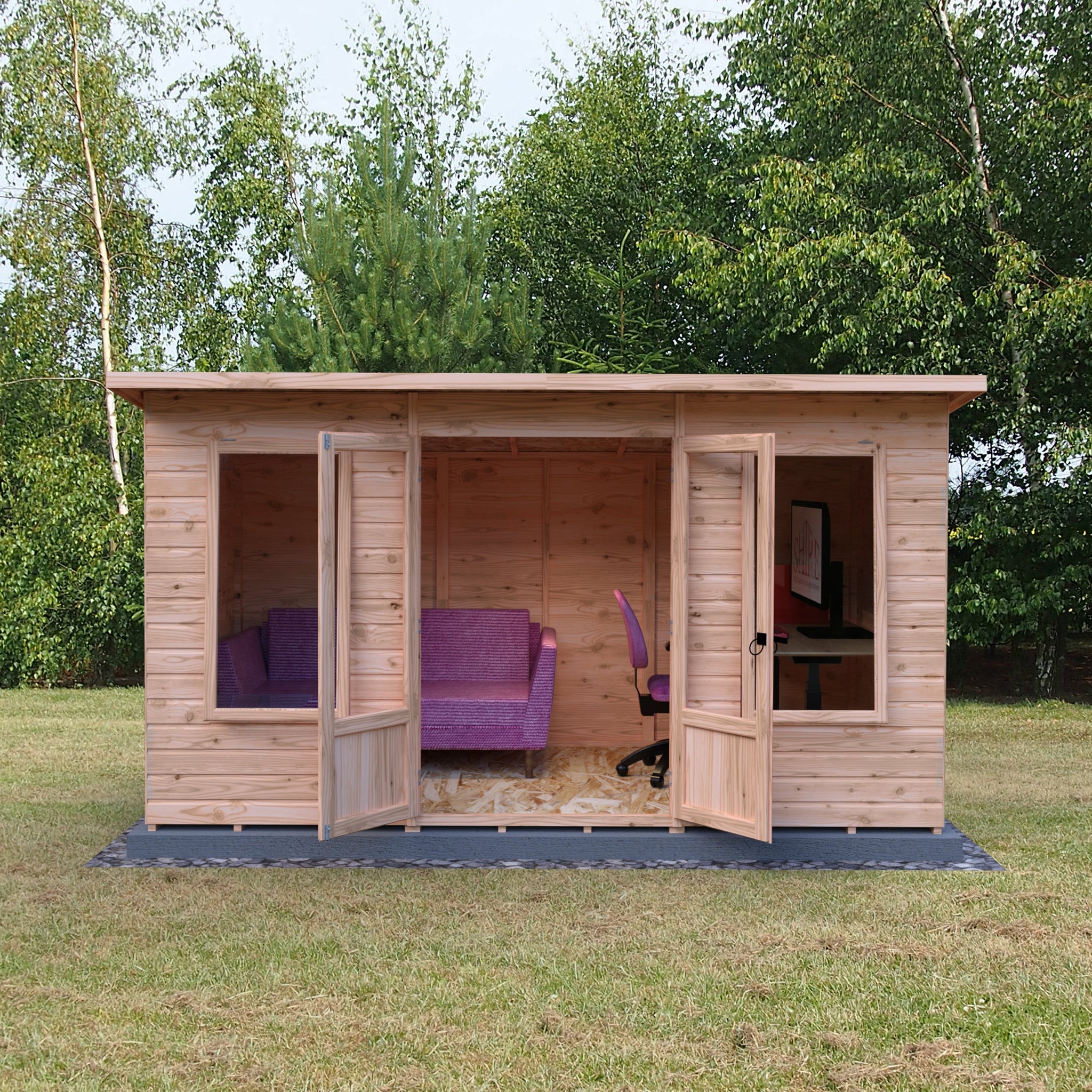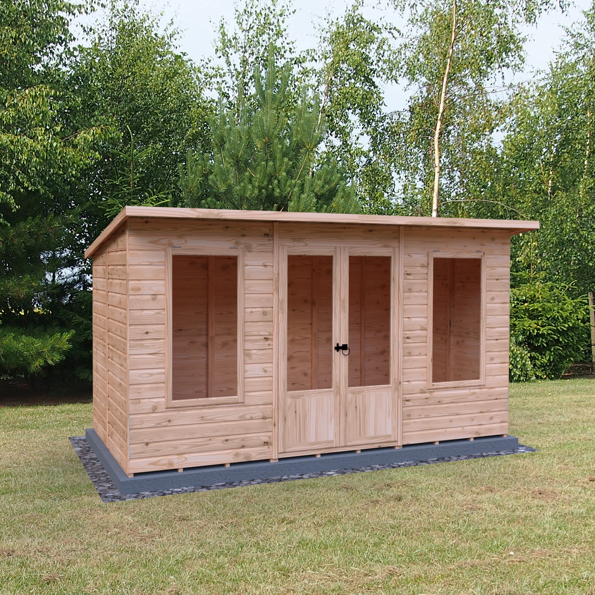 Transform your garden into a tranquil retreat with the Shire 12x6 Peony Pent Summerhouse. This beautifully designed summerhouse features a contemporary pent style roof that complements any modern garden aesthetic. Crafted with high-quality 12mm shiplap interlock cladding, the walls provide both durability and insulation, ensuring a cosy space for relaxation or social gatherings.