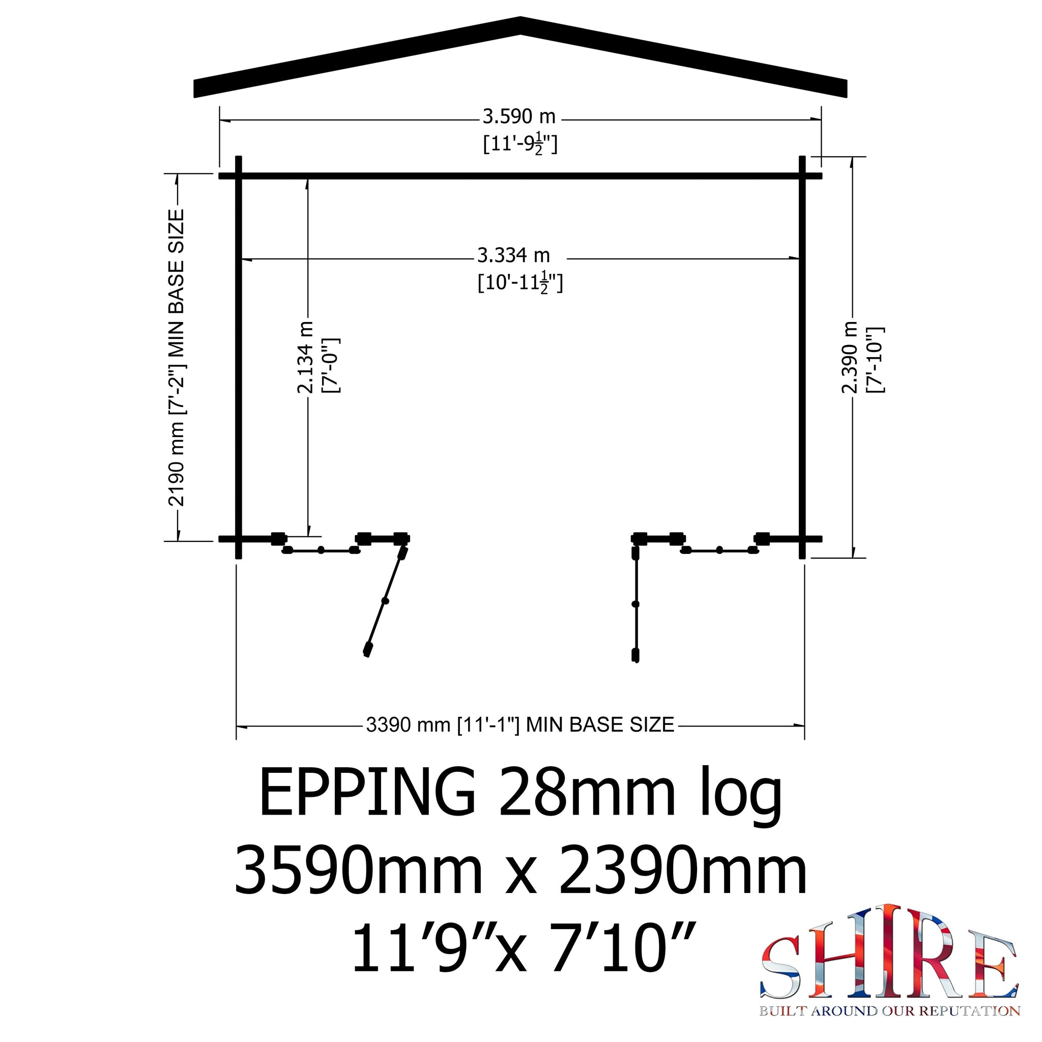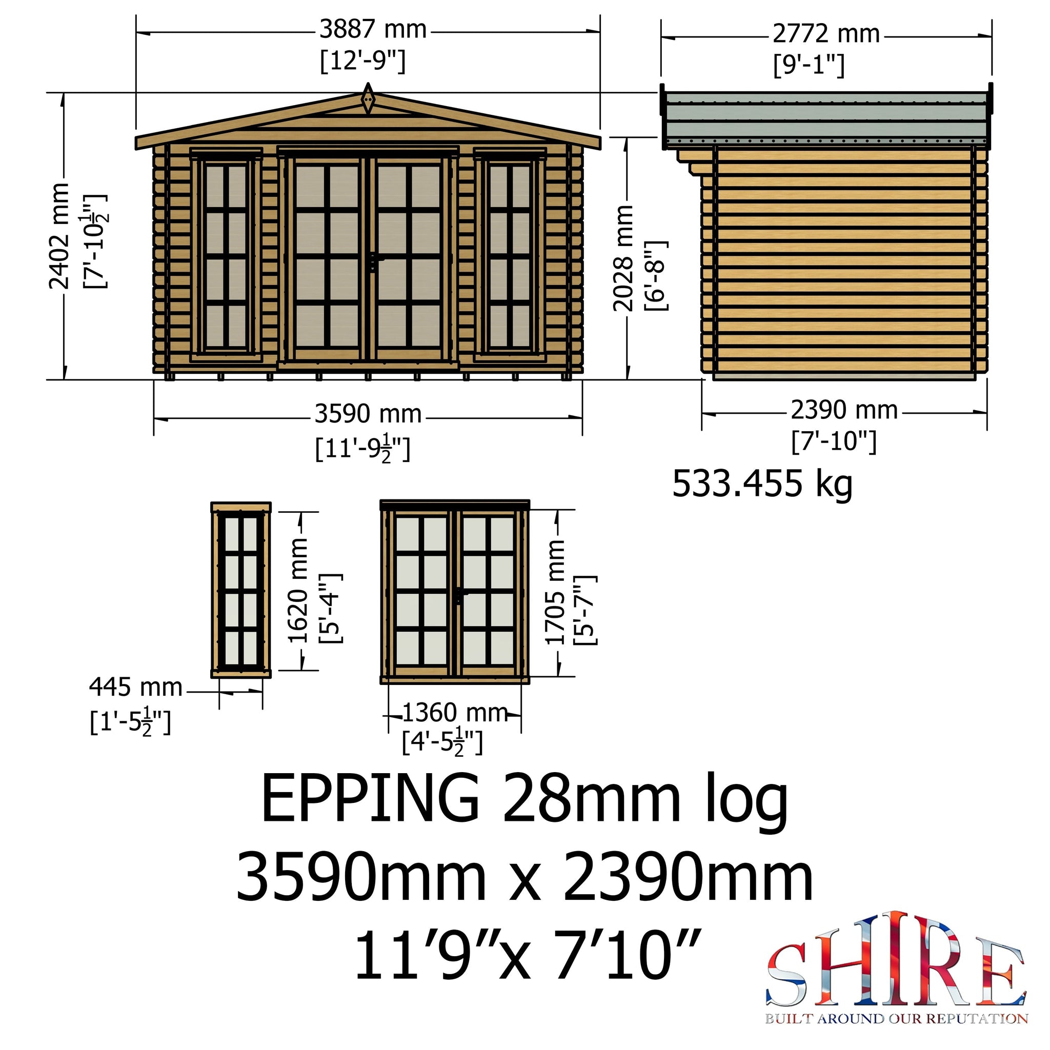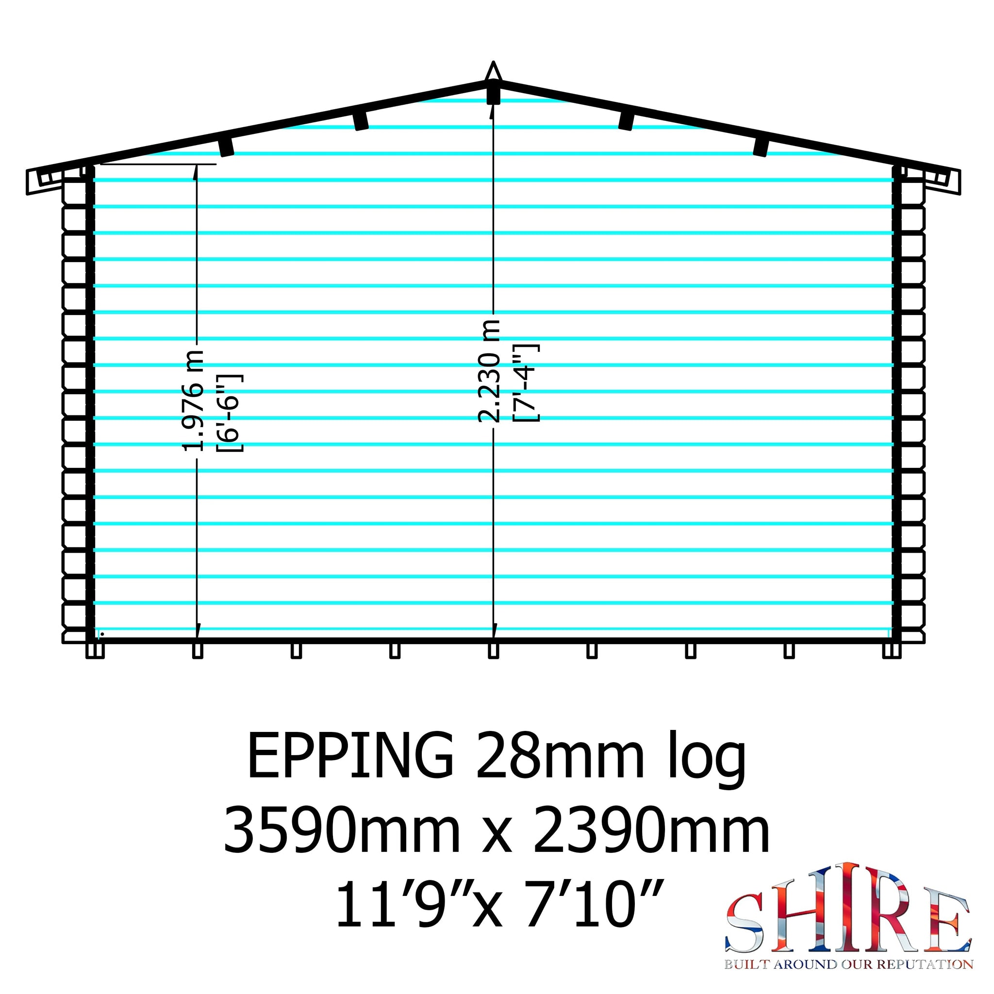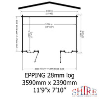 Shire 12x8 Epping log cabin 28mm Cladding