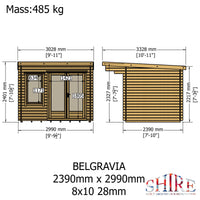 Introducing the Shire 8x10 Belgravia Log Cabin, the perfect blend of style and functionality for your outdoor space. With an impressive 28mm log wall thickness, this not only exudes charm but also provides exceptional insulation, ensuring a comfortable environment throughout the year. The spacious interior, measuring 2134mm wide and 2734mm deep, offers ample room for your garden tools, or even a cosy garden office.