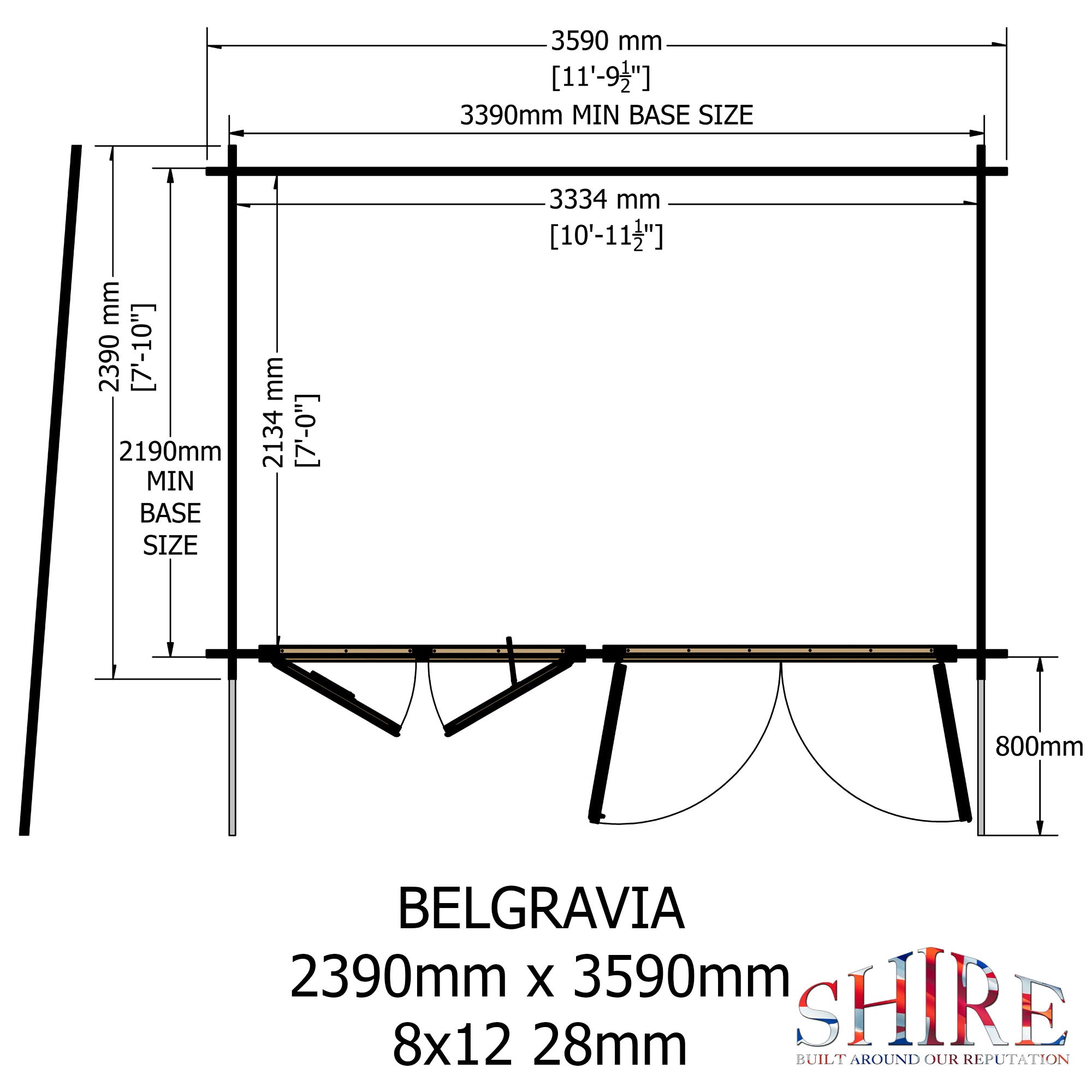 Introducing the Shire 8x12 Belgravia Log Cabin, the perfect blend of style and functionality for your outdoor space. With an impressive 28mm log wall thickness, this not only exudes charm but also provides exceptional insulation, ensuring a comfortable environment throughout the year. The spacious interior, measuring 2134mm wide and 3334mm deep, offers ample room for your garden tools, or even a cosy garden office.