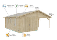 Introducing the Garage+Carport 6,8x5,6 Log Cabin with 44mm logs, a versatile and stylish addition to your property, available on Shire. Perfect for accommodating both your vehicle and your storage needs, this spacious log cabin offers durability, style, and functionality. The solid 44mm log wall type ensures that the structure is robust and capable of enduring the elements, while the convenient carport provides additional protection for your car.