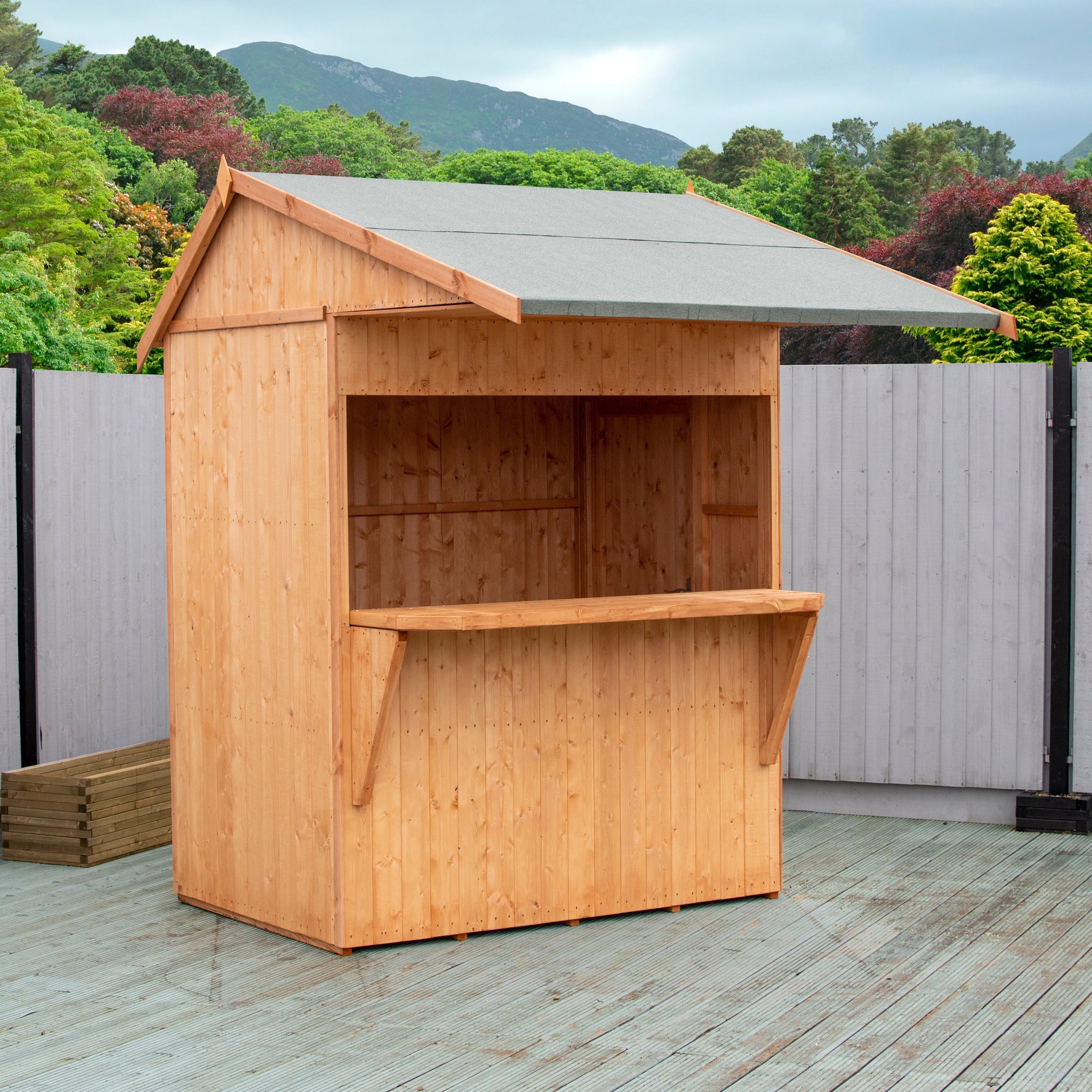 The Garden Bar boasts quality features: robust framing, shiplap tongue and groove construction for durability and element protection, and a 10-year anti-rot guarantee. Optional professional assembly or DIY with comprehensive instructions are offered, ensuring ease and peace of mind.