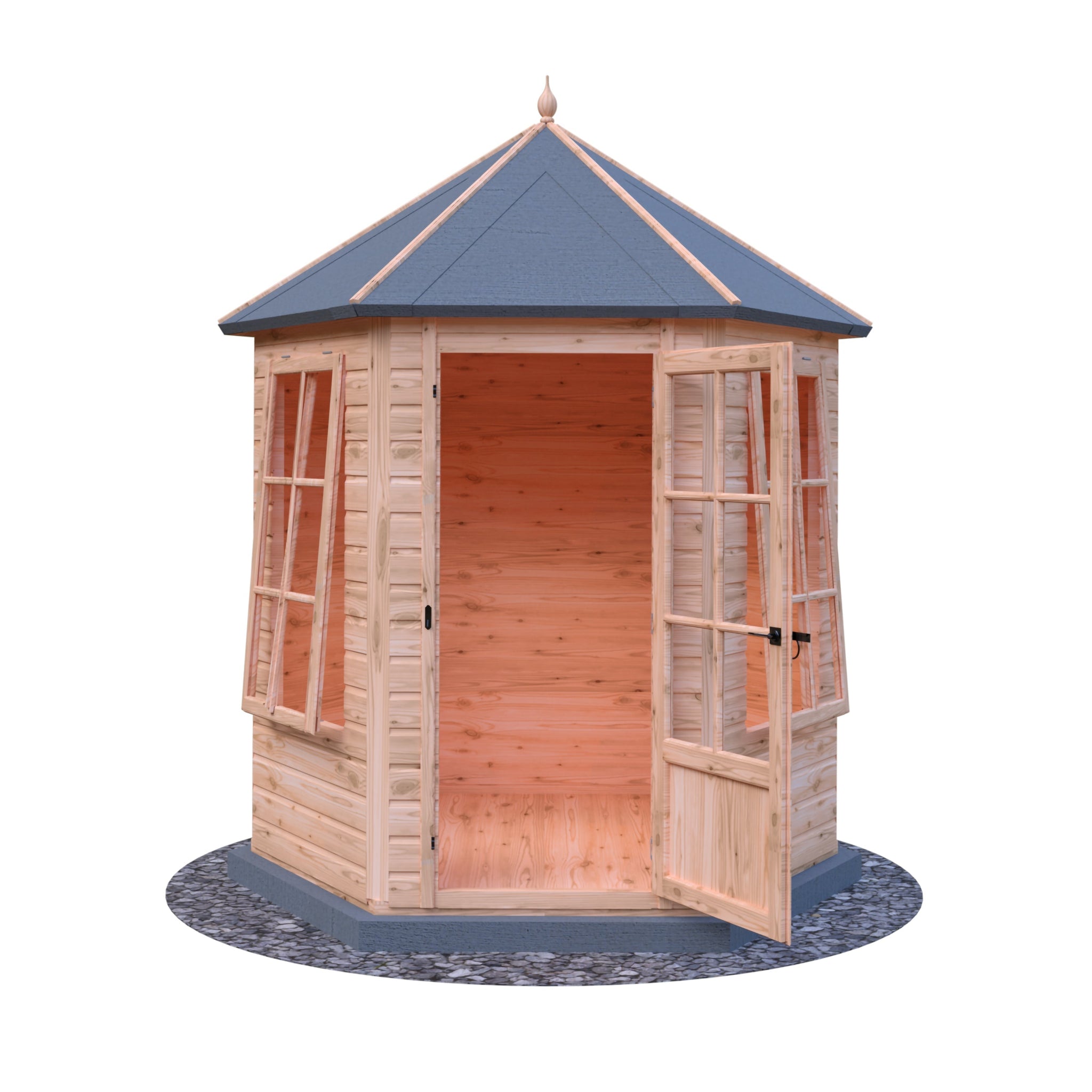 Introducing the 6 x 6 Gazebo Summerhouse from Shire, a charming and practical addition to any garden looking for a touch of elegance and a versatile outdoor space. Whether you're envisioning a cozy retreat, a garden office, or an entertainment area for those sunny days, this summerhouse is designed to enhance your outdoor living experience, providing both style and functionality.