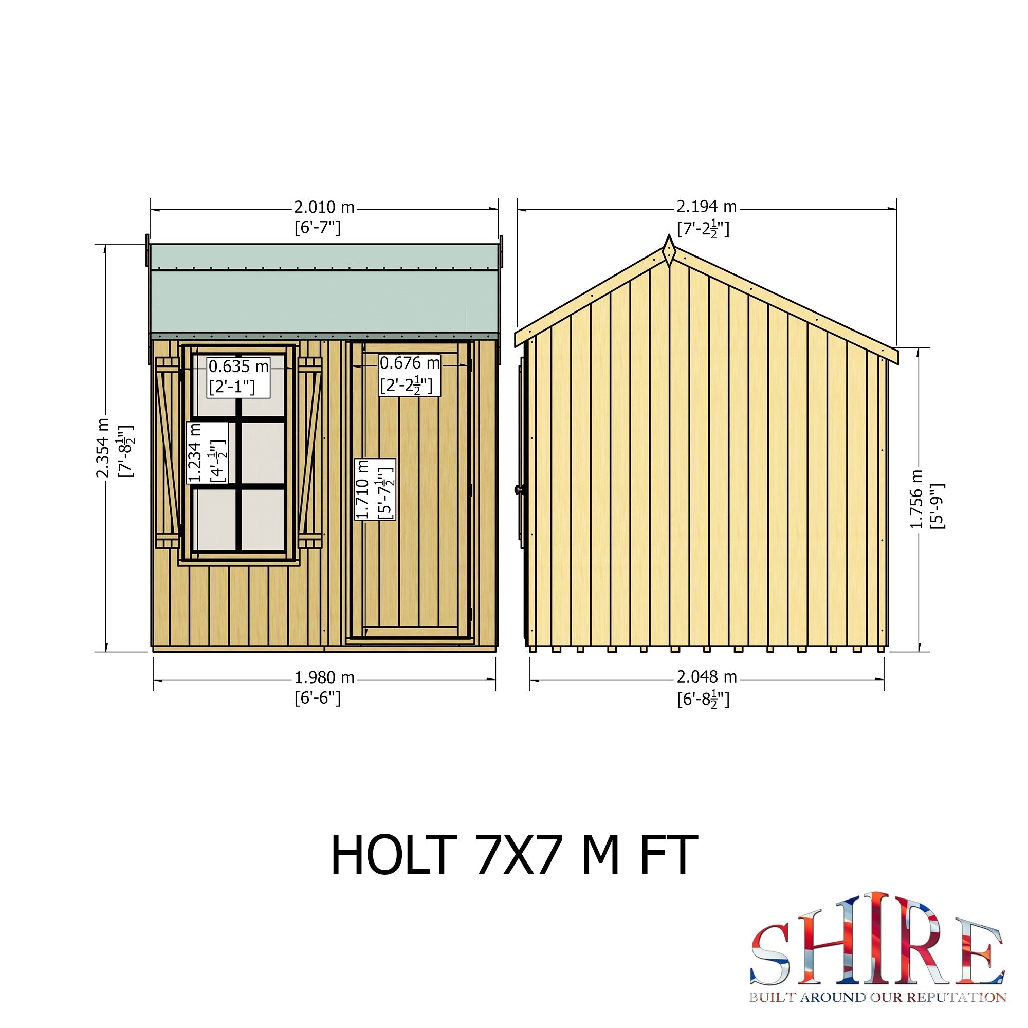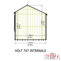 Discover the Holt SD, a 7 x 7 garden shed that blends functionality and style, brought to you by Shire-the UK's premier manufacturer of garden buildings. This superb economy wooden shed is tailor-made for garden enthusiasts who require a reliable space for storing tools, outdoor furniture, and horticultural supplies without compromising on quality.