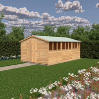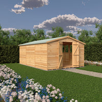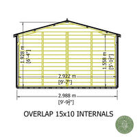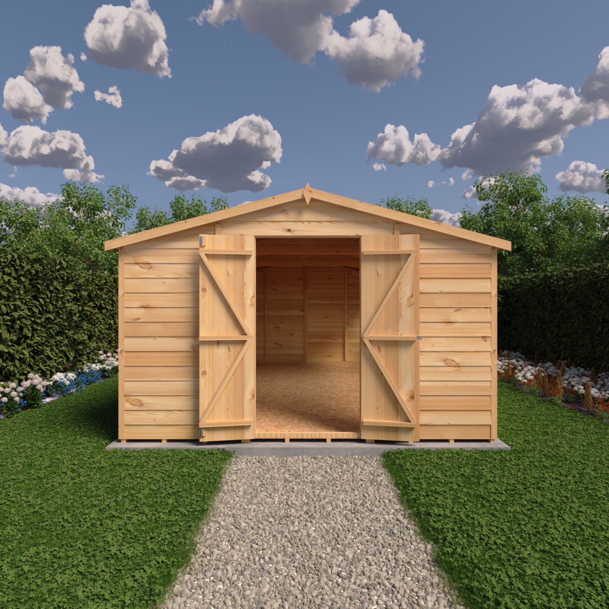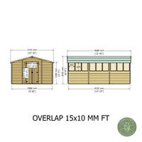 The "10x15 Overlap Double Door Economy Shed" is designed and constructed in the UK by Shire, a brand known for its commitment to quality and sustainability. It is delivered flat-packed with easy-to-follow instructions, perfect for DIY enthusiasts looking to undertake a satisfying project.