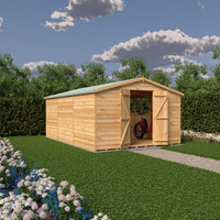 Crafted with careful attention to both functionality and design, this shed is made with a robust 34x34mm framing and features attractive 6mm overlap walls which not only blend seamlessly into your garden landscape but also provide optimal durability. With our double door access, you can easily store large items while the nine windows allow natural light to flood the interior, making this shed a bright and airy space for any activities or storage solutions.