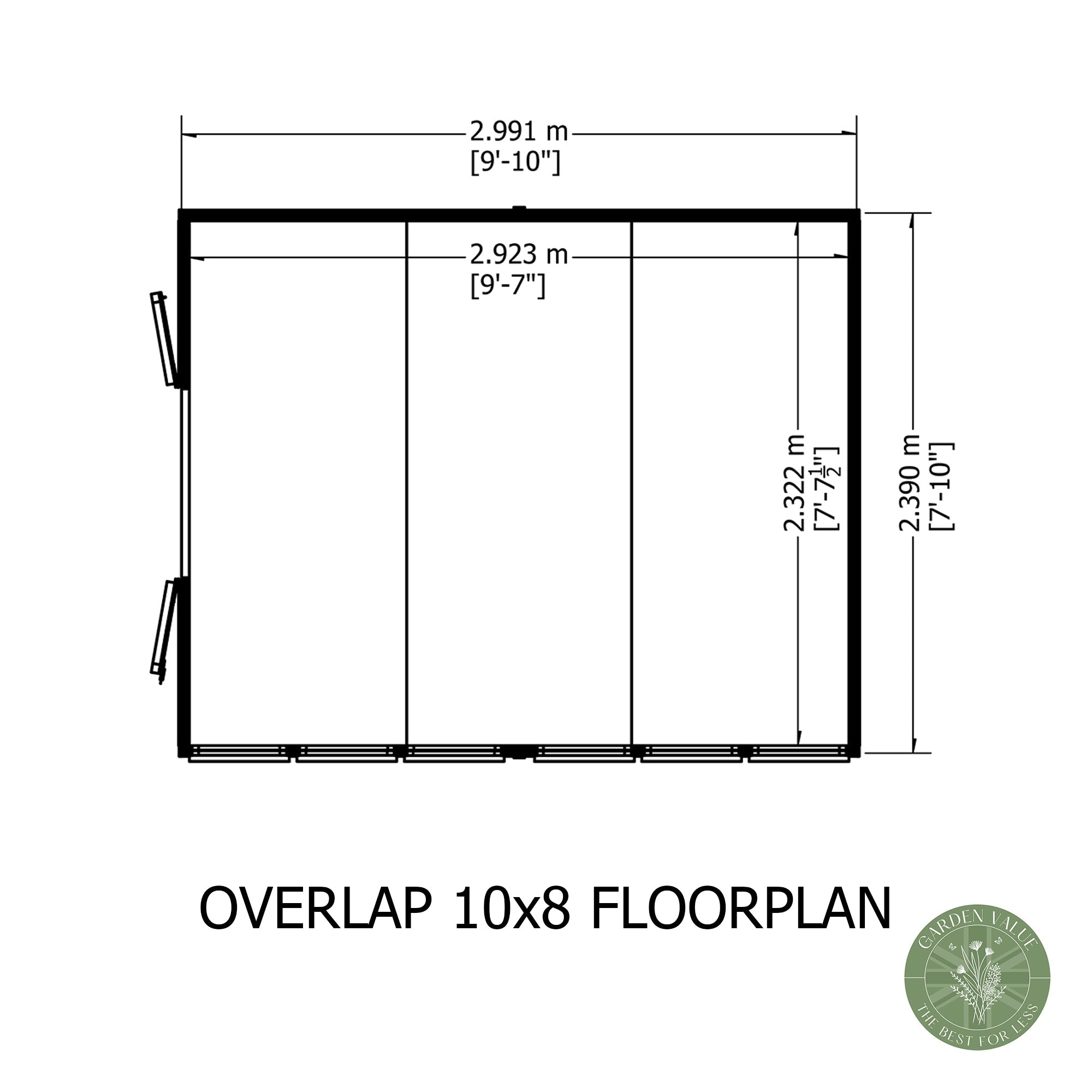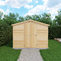 The 10x8 Overlap Double Door Economy Shed is an excellent choice for those who require a more expansive storage solution at a competitive price. With its robust design and generous dimensions, this shed is perfect for storing a wide array of garden tools, equipment, bicycles, and even furniture during the off-season.