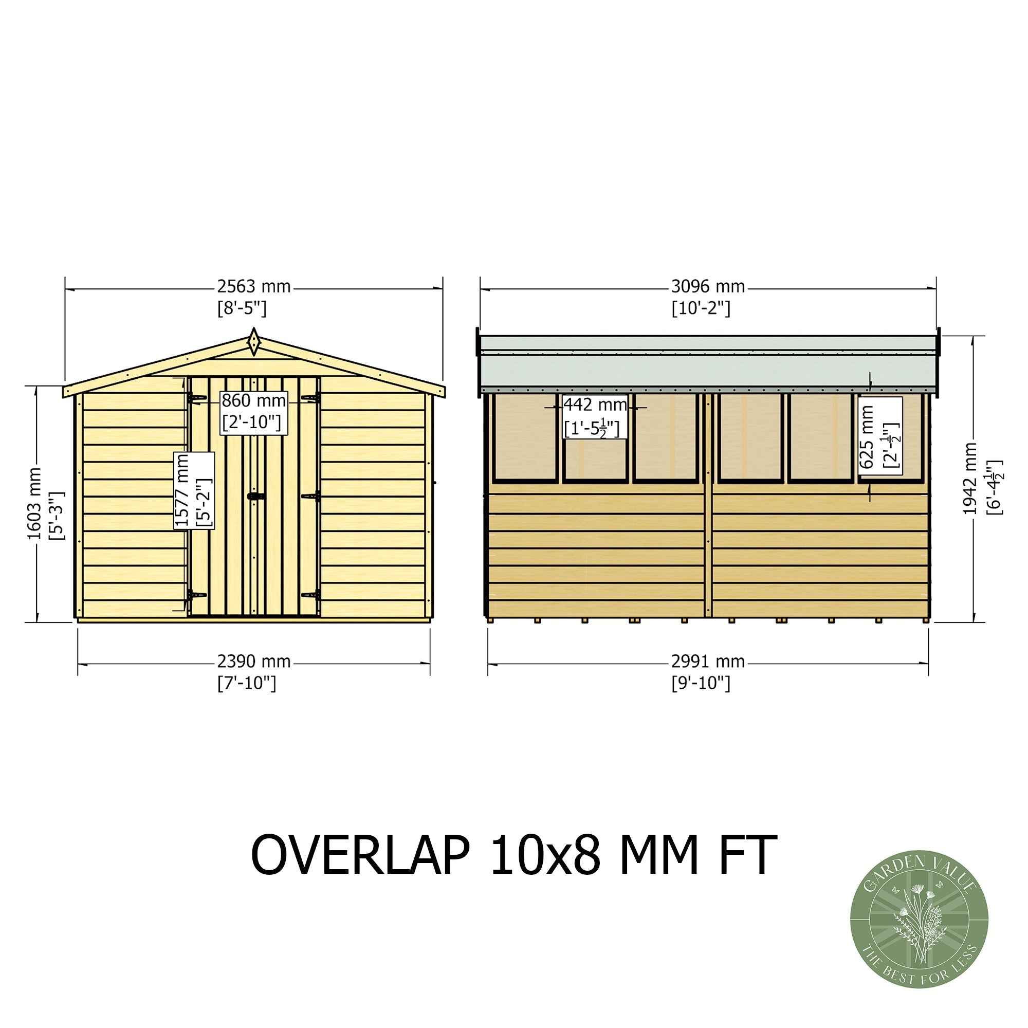Presenting the 10x8 Overlap Double Door Economy Shed, a spacious and beautifully constructed addition to your garden. This charming and practical garden shed is not only exceedingly budget-friendly but also exemplifies the exceptional value and durable construction synonymous with the Shire brand.