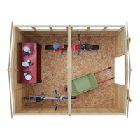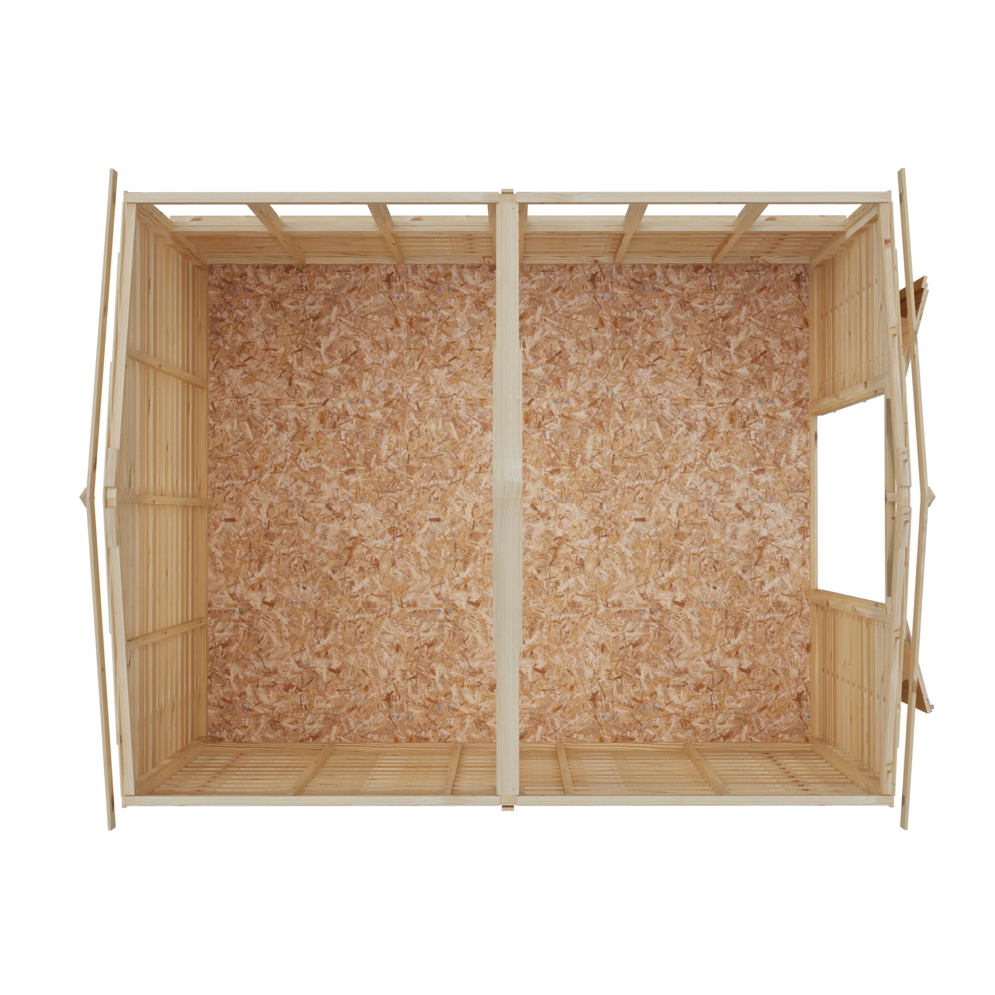 Crafted from high-grade materials, the 10x8 shed features overlap walls that ensure solid protection against the elements. The floor and roof are constructed from hard-wearing 9mm and 8mm oriented strand board (OSB) respectively, ensuring longevity and robustness. The substantial 34mm x 34mm framing provides a sturdy backbone to the structure, guaranteeing stability for years to come.