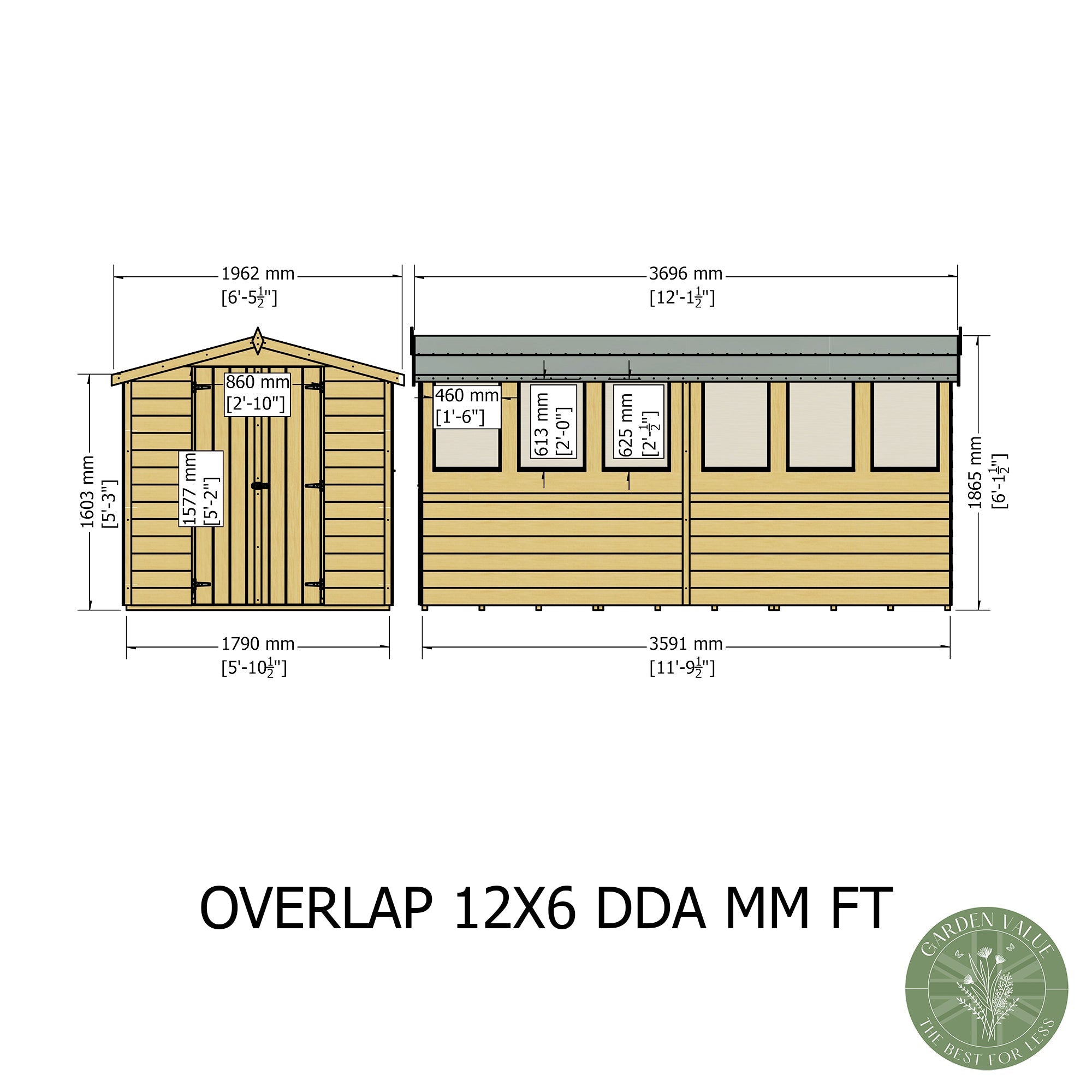 Introducing the dependable and economical 12x6 Overlap Double Door Shed, a solid and spacious addition to the Shire Garden Shed category. Designed for those in need of substantial outdoor storage without breaking the bank, this apex roofed shed stands out for its excellent value and traditional aesthetic.