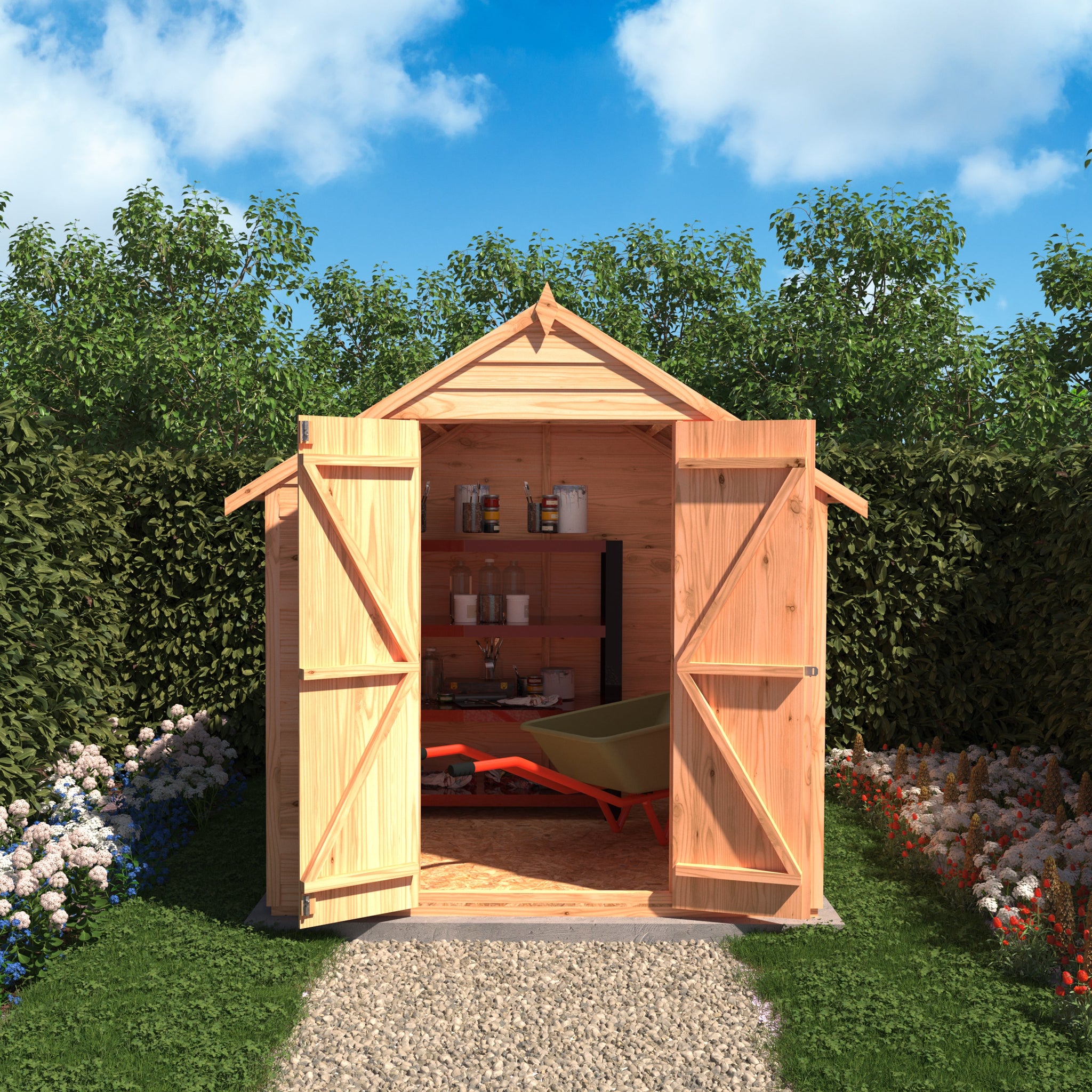 Crafted from high-quality timber, the 6 x 6 Overlap Double Door Shed ensures great value without compromising on durability. Ideal for storing a variety of garden essentials, from lawnmowers and gardening tools to outdoor furniture and bicycles, this shed provides ample room for all your storage needs while fitting comfortably in most garden sizes.