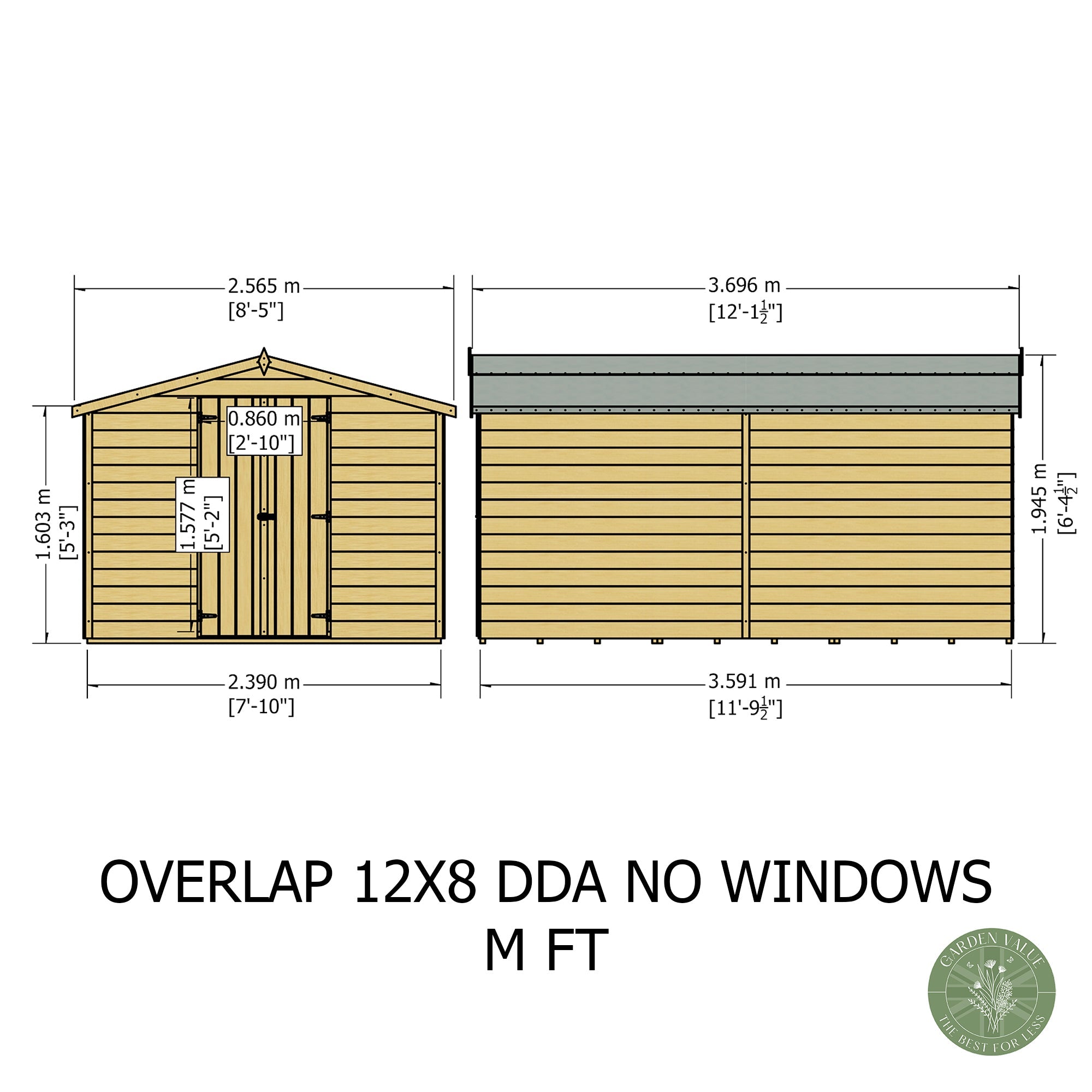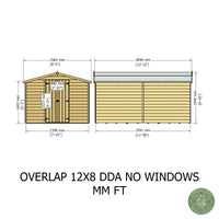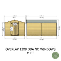 Introducing the Overlap Double Door No windows 12x8 Storage Shed. This expansive garden building is perfect for those requiring substantial outdoor storage space without compromising on economy. Whether you're storing garden machinery, bicycles, or a wide array of gardening tools, this no-frills, sturdy shed delivers on both functionality and affordability.